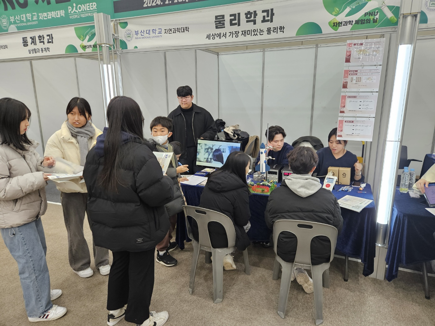 PNU 자연과학체험의 날 일시 : 2025년 1월 11일 토요일 장소 : 부산시민회관 백산홀 참여인원 : 이창환 교수, 임상훈 교수, 이경록 조교, 이민형, 탁근영, 박민준, 윤정은, 한대희, 이승엽
