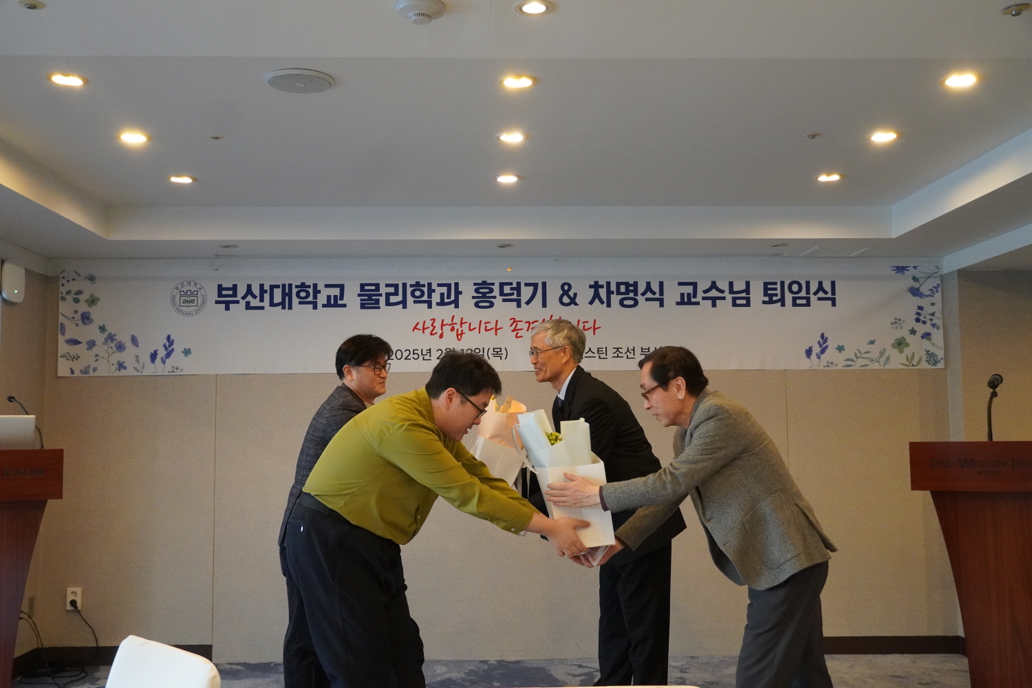 부산대학교 물리학과에서는 제29회 물리 오픈랩을 맞아, 많은분들과 함께 과학의 즐거움을 나누는 뜻깊은 시간을 가졌습니다. 바쁘신 와중에도 오픈랩에 방문해주시고, 열정적으로 참여해주신 초·중·고등학생 및 시민 여러분께 진심으로 감사드립니다. 이번 행사는 물리학의 원리를 쉽고 재미있게 접할수 있도록, 우리 학과 학부생들이 직접 실험을 준비하고 안내하는 체험 중심의 프로그램으로 꾸며졌습니다. 일시 : 2025년 5월 16일(금) ~ 5월 17일(토)장소 : 부산대학교제2물리관 개회식에서 따뜻한 격려의 말씀을 전하시는 물리학과학과장님 개회 인사 후, 이번오픈랩을 함께 만들어간참가자, 학부생 운영진, 교수님들 모두가 함께 모여 단체사진을 촬영하였습니다.다양한 세대가 한자리에 모여 과학의 즐거움을 나누는이 자리는물리학과 커뮤니티의 따뜻한 연대감을 잘 보여주었습니다. 본격적인 실험 체험은 제2물리관 1층105호에서 시작되었습니다.참가자들은 각 실험실을 돌며, 물리학과와 물리교육과 학부생들이 직접 준비한다양한 실험 시연과 참여형 프로그램에 참여하였습니다.105호 → 212호 → 301호 → 307호 → 407호로이어지는 동선에 따라총 20여 개의 실험이 준비되어 있었고, 각공간은 학생들의 호기심과 열기로 가득 찼습니다.그 생생했던 현장을 사진과 함께 살펴보시죠! 제2물리관 1층 105호에서는 물리학의 역학적 원리를 생생하게 느낄 수 있는다양한 시연과 체험 프로그램이 진행되었습니다.우주 탐사선의 궤도 설계에 활용되는 스윙바이 효과 시연부터,실제처럼 움직이는 자기부상열차 시연,회전계에서의 힘을 체감할 수 있는 코리올리 힘 체험,그리고 관성의 법칙을 응용한 로봇조의 시연까지,참가자들은 단순한 설명을 넘어서, 직접 눈으로 보고 손으로 체험하며역학과 운동에 대한 직관을 키워볼 수 있는 시간을 가졌습니다. 105호에서의흥미로운 체험을 마친 참가자들은 제2물리관 2층, 212호 실험실로 이동했습니다.이곳에서는 보다 정밀하고 깊이 있는 물리 현상을주제로 한 체험들이 준비되어 있었습니다.이제 212호에서어떤 실험이 기다리고 있었는지 함께 살펴보시죠! 2층 212호 실험실에서는 파동, 광학, 양자역학, 유체역학 등폭넓은 주제를 다룬 실험들이 진행되었습니다.먼저, 공명을 이용한 정상파와 클라드니 무늬 실험에서는음파에 의해 진동판 위의 모래가 일정한 무늬를 형성하는 과정을 통해정상파와 공명의 개념을 시각적으로 확인할 수 있었습니다.이어지는 편광 관련 체험에서는,빛의 편광 성질을 활용한 마술상자와 편광 선글라스 실험이 준비되어 있었습니다.편광 필터의 배열에 따라 시야가 달라지는 현상을 관찰하며,편광이 실생활에서 어떻게 활용되는지를 이해할 수 있도록 구성되었습니다.광활성 물질 체험에서는 물엿이담긴 시약병을 통해,광학 활성도가 각도에 따라 빛의 색을 어떻게 변화시키는지를 살펴볼 수 있었습니다.보다 심화된 내용으로는 양자 알고리즘 기계 시연이 진행되었습니다.고전적인 역학 장치를 활용해 양자 알고리즘의 병렬성과 중첩 개념을 설명하며,양자컴퓨터가 기존 컴퓨터와 어떻게 다른지를 소개하는 교육적 목적의 실험이었습니다.마지막으로, 마그누스 효과 시연 및 체험에서는회전하는 물체가 유체 내에서 어떤 방향으로 힘을 받는지를 직접 실험을 통해 확인할 수 있었습니다. 행사를 성공적으로 마무리한 후, 학부생 운영진과 교수님들이 다시 한자리에 모여 마지막 단체사진을 남겼습니다.앞으로도 부산대학교 물리학과는더 많은 분들과 과학의 감동을 나누는 자리를 마련해 나가겠습니다.내년 제30회를 기약하며, 다시 한 번 제29회 물리 오픈랩에 함께해주신 모든 분들께 진심으로 감사드립니다.
